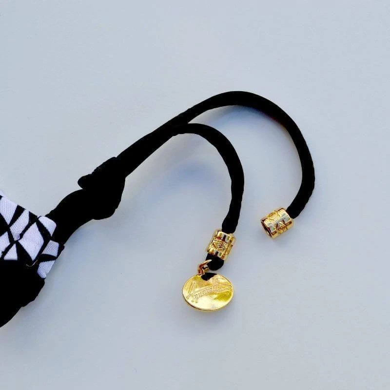 - Black and White checkered throughout with red accent straps